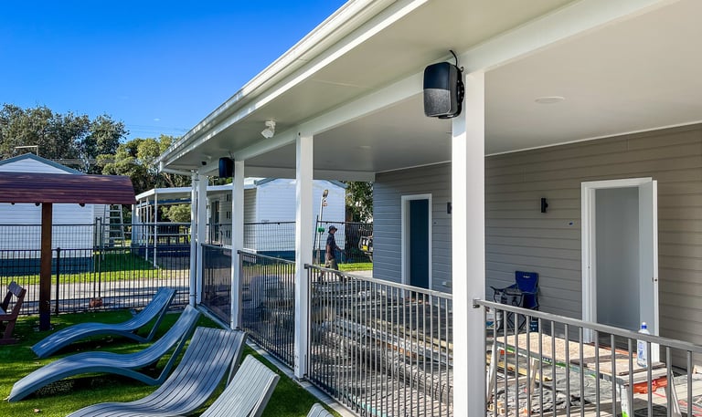 Audio-visual systems for clubs, pubs, hotels and caravan parks help create engaging environments for guests while supporting day-to-day venue operations. Bare Industries designs and installs commercial AV systems including distributed sound systems, public address systems, outdoor speakers and display screens that allow venues to manage music, announcements, events and entertainment across multiple areas.